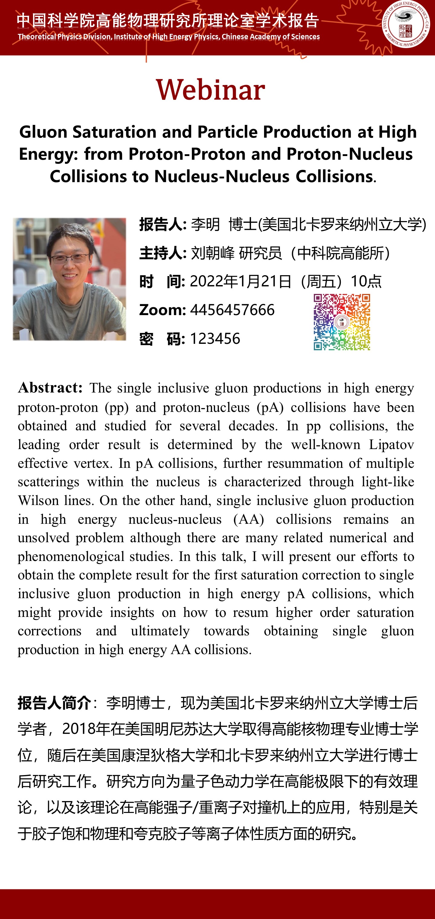 【Webinar 0121】Gluon Saturation and Particle Production at High Energy: from Proton-Proton and Proton-Nucleus Collisions to Nucleus-Nucleus Collisions